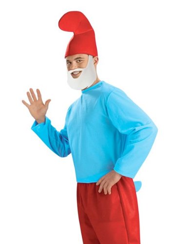 Look just like your favorite Smurf in the Papa Smurf Mens Costume. This officially licensed Halloween costume includes a light blue, long sleeved fleece top, red pants with an attached blue tail, a white beard, and Papa Smurf's signature red hat. The outfit is available in Standard and X-Large, so you can be sure it will fit comfortably. It looks authentic on its own or with tube makeup, sold separately on our website. Papa Smurf is a wise leader who is about 542 years old and known for his elderly appearance and paternal ways. He appeared in the 80s animated series The Smurfs as well as the recent computer animated movie. Go on an adventure this Halloween alone or with friends in any of our other The Smurfs costumes. Smurfs fans young and old are sure to appreciate this costume's genuine details, which will make it look like you walked out of a scene from the movie.You will not be disappointed with Mens Papa Smurf Costume - Adult XL