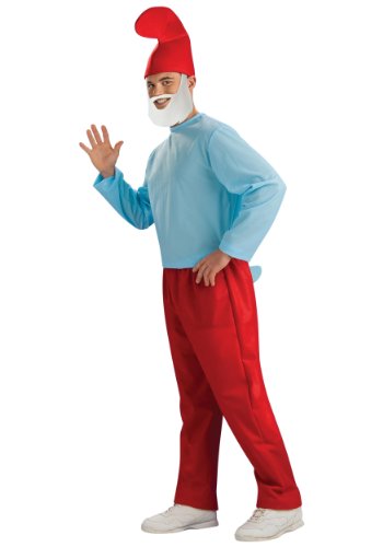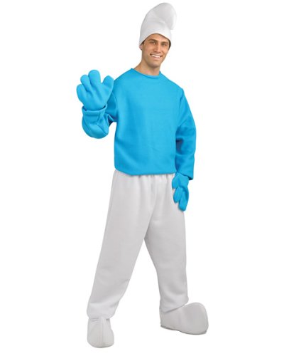 Bring your favorite blue childhood character to life in the Smurf Mens Costume. This officially licensed Halloween costume includes a long sleeved light blue fleece shirt, matching blue mittens, white pants and pointy white shoe covers, and a pointy white Smurf hat. The outfit is available in Standard and X-Large sizes, so you can be sure it will fit comfortably. It looks authentic on its own or along with tube makeup, sold separately on our website. The Smurfs became famous in 80s animated television series "The Smurfs," which followed the Smurfs as they went on simple yet bold adventures. The computer animated Smurfs movie came out last year. Whether you grew up with the Smurfs or can't get enough of the new movie, the Smurf Mens Costume is for you. Its authentic details are sure to delight Halloween party goers young and old.You will not be disappointed with